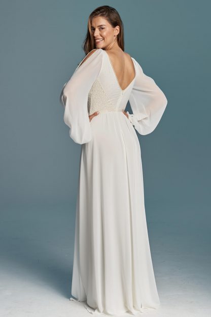 Zmierz obwód ręki (jeśli suknia posiada rękaw) w miejscu gdzie chciałabyś aby kończył się rękaw o długości ¾, czyli nieco pod łokciem.