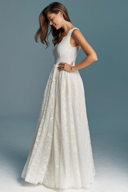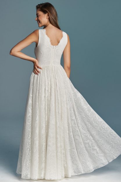 Zmierz wysokość tyłu od środka – od najgłębszego punktu dekoltu do talii. Jeśli suknia ma zabudowane plecy lub stójkę, to od najbardziej wystającego kręgu na karku do talii.
