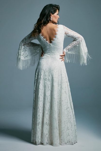 Zmierz wysokość tyłu od środka – od najgłębszego punktu dekoltu do talii. Jeśli suknia ma zabudowane plecy lub stójkę, to od najbardziej wystającego kręgu na karku do talii.