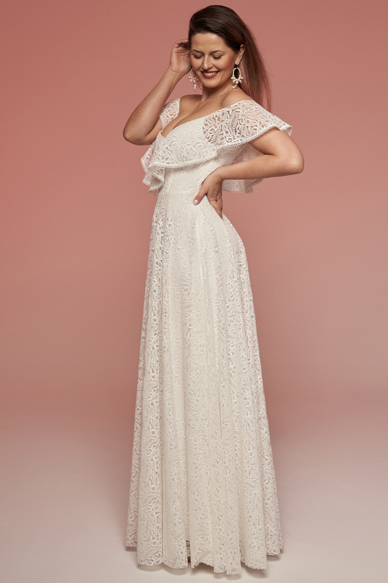 W przypadku sukni z dekoltem hiszpańskim.