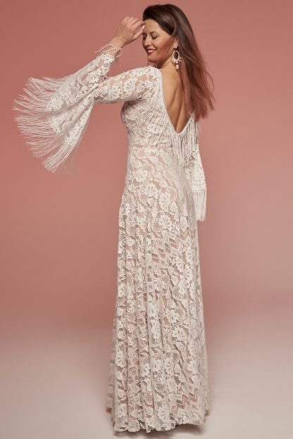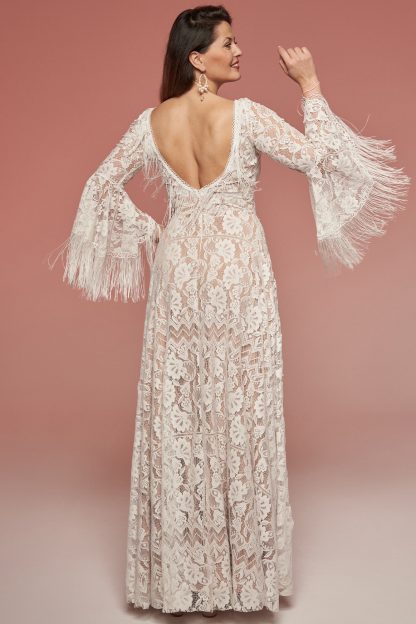 Zmierz wysokość tyłu od środka – od najgłębszego punktu dekoltu do talii. Jeśli suknia ma zabudowane plecy lub stójkę, to od najbardziej wystającego kręgu na karku do talii.