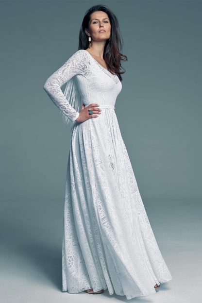 Zmierz obwód ręki (jeśli suknia posiada rękaw) w miejscu gdzie chciałabyś aby kończył się rękaw o długości ¾, czyli nieco pod łokciem.